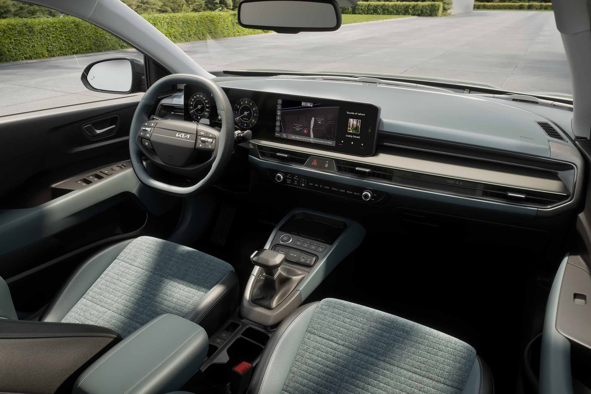 Im Interieur des überarbeiteten Stonic zeigt sich die Kia-Strategie, moderne Ausstattungsmerkmale und Technologien breiten Kundenkreisen zugänglich zu machen. Das auffälligste neue Element ist das Panoramadisplay, das mit den beiden großformatigen Bildschirmen des digitalen Kombiinstruments und des Navigationssystems (jeweils 31,2 cm/12,3 Zoll) einen neuen Maßstab im Segment der B-Crossover setzt. Eine so genannte Multi-Mode-Bedieneinheit ersetzt die herkömmlichen Bedienelemente für die Klimaanlage durch eine elegante Schnittstelle, die dem Fahrer direkten Zugriff auf die wichtigsten Klimatisierungs- und Infotainmentfunktionen bietet. Neu gestaltet wurden außerdem das Lenkrad, je nach Ausführung mit zwei oder drei Speichen, der Schaltknauf bzw. Wählhebel, die Mittelkonsole und das Armaturenbrett. Zum komfortablen Fahrerlebnis tragen weitere Neuerungen wie USB-C-Schnellladeanschlüsse, eine induktive Smartphone-Ladestation und eine Ambientebeleuchtung bei.